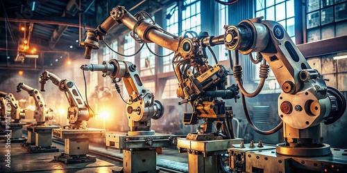 Vintage Closeup of a Robotic Arm Assembly with Intricate Servo Motors and Wiring