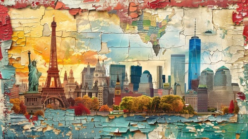 Vintage Collage of Famous Landmarks