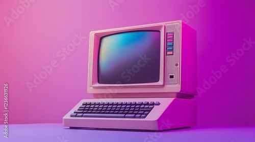 Vintage Computer with Glowing Screen
