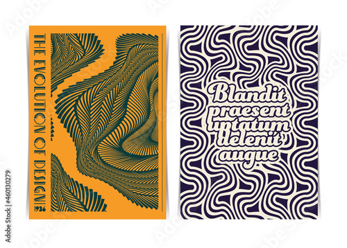 Vintage Cover Template with Abstract Distorted Wave Lines Background. Vector illustration.