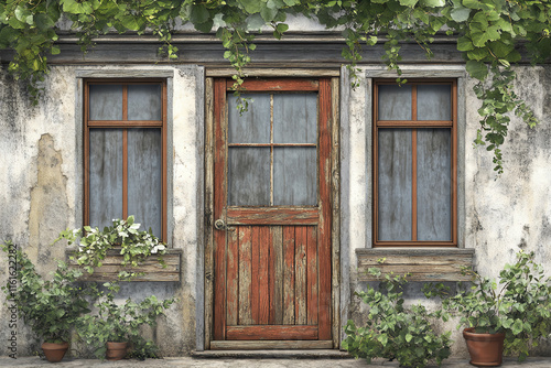 Vintage door and window set, for rural ambiance