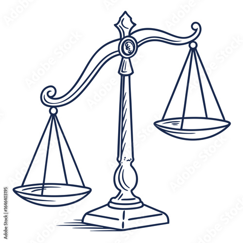 Vintage Justice Scale Icon in Sketch Style Isolated on White Background