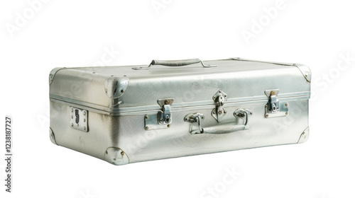 Vintage metal suitcase isolated on transparent background, ready for travel