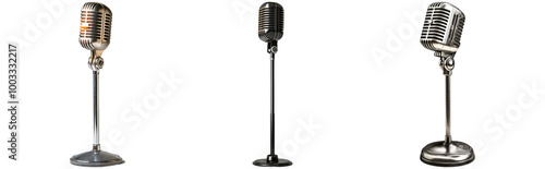 Vintage Microphones in a Row on Stand Isolated on Transparent Background