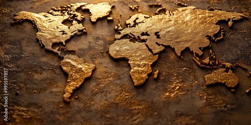 Vintage nautical chart with embossed gold texture and detailed coastlines in antique style