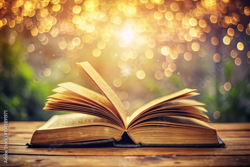 Vintage Open Book on White Background with Bokeh Effect for Elegant Literary Themes