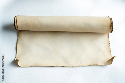 vintage parchment scroll slightly rolled at edges resting against clean white background