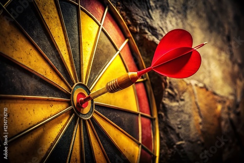 Vintage Photo: Red Dart Hitting Bullseye, Missing Yellow Segment, Dark Background, Dramatic Lighting