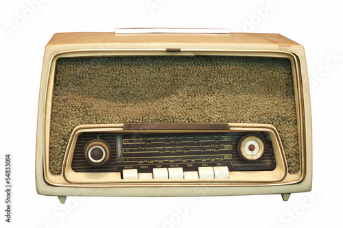 Vintage radio on a white background with clipping path