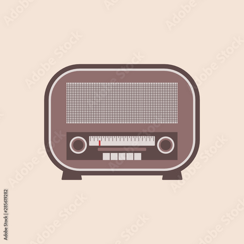 Vintage radio with buttons on the beige background. Broadcasting, old media, concept. Retro radio icon. Vector illustration of an old retro radio receiver. Antique radio, 20th century. Flat style.
