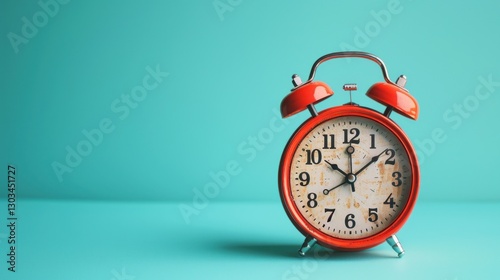 Vintage Red Alarm Clock on Teal Background: Punctuality and Time Management Concept