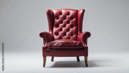 Vintage red leather armchair on a plain white background, front perspective of the chair.