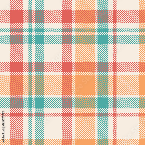 Vintage Red, Teal, and Orange seamless plaid pattern background for textile design .Perfect for textile or print design. vector illustration.