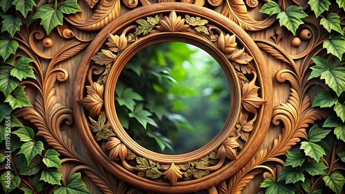 Vintage Round Frame with Leaves, Photorealistic AI Art