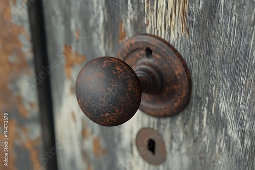 Vintage Rustic Door Knob Illustration on Weathered Wooden Door