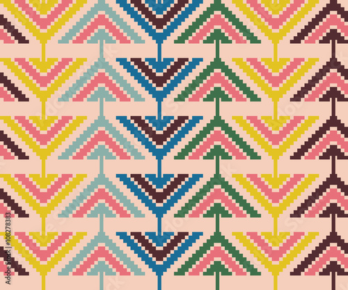 Vintage seamless pattern with triangles and pixels