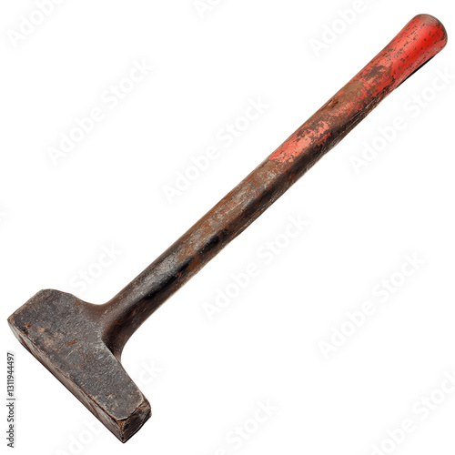 Vintage Sledgehammer: A weathered sledgehammer with a red and black wooden handle, showcasing its industrial history and durability.