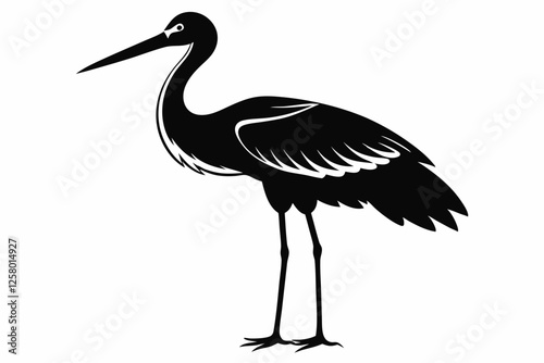 Vintage Stork Illustration – Retro Bird Vector Art,Stork Line Art Silhouette Icon.