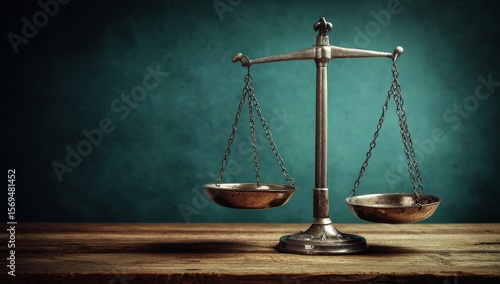 vintage style of a balanced scale with two weights. one represents justice and the other represents a positive social impact.
