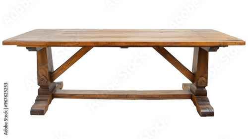 Vintage Style Wooden Rectangle Table Isolated on Png Background.
