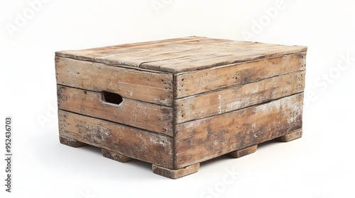 Vintage Weathered Wooden Storage Crate on Pristine White Background