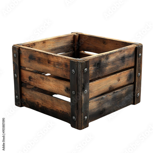 Vintage Wooden Crate with Transparent Background
