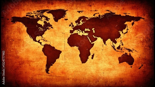 Vintage world map in sepia tones on parchment paper. Historical backdrop for geography study