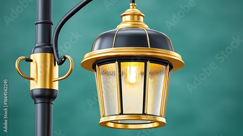 Vintage Wrought Iron Street Lamp with Soft Golden Glow Illuminating Path