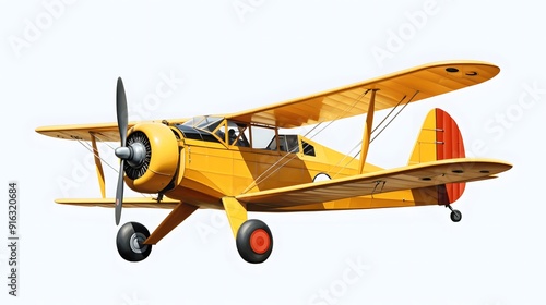Vintage yellow biplane isolated on a white background