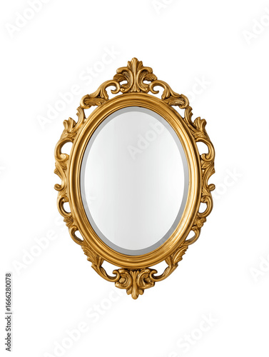 Vintage-style mirror featuring a luxurious gold finish