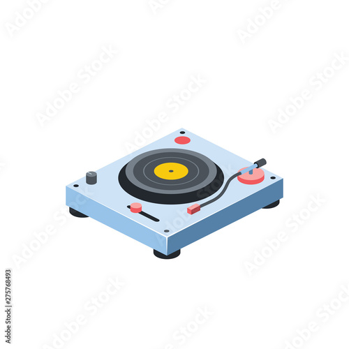 Vinyl Record Player. Vector 3d isometric color icon new flat style. Creative illustration, idea for infographics.