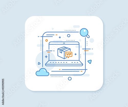 Vip parcel line icon. Abstract vector button. Very important person sign. Member club delivery symbol. Vip parcel line icon. Laptop concept badge. Vector