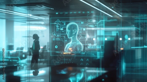 Virtual AI Assistant Interacting with Customer Through Holographic Interface