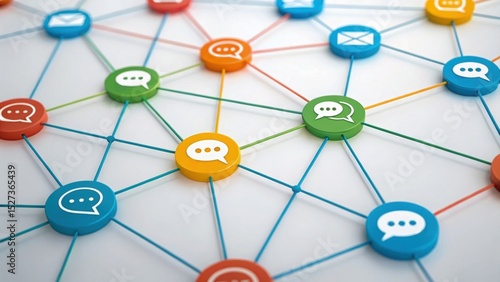 virtual assistant multitasking concept. Network of colorful communication icons connected by lines.