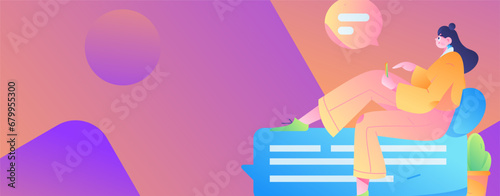Virtual characters social communication concept business flat vector hand drawn illustration