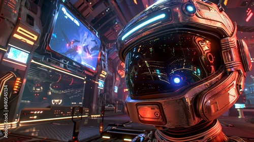 Virtual reality gaming experience: Illustrate a dynamic virtual reality gaming experience with immersive graphics and interactive elements.