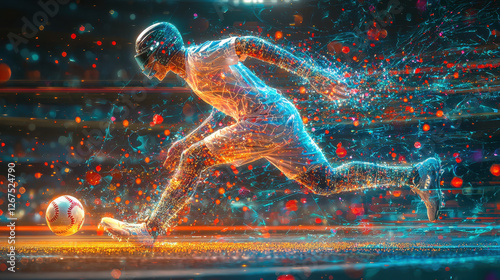 Virtual reality sports player engages in thrilling competition within a cyber stadium, delivering excitement and adrenaline directly to viewers