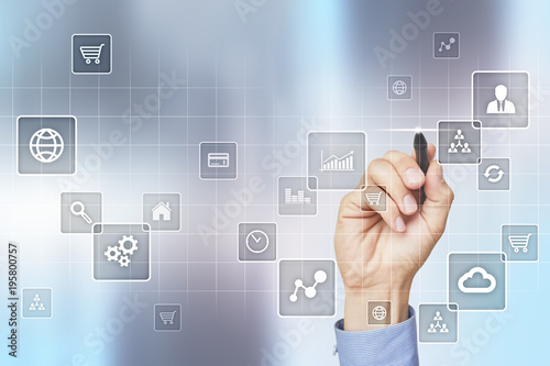 Virtual screen interface with applications icons. APPS. Strategy planning Internet technology concept.