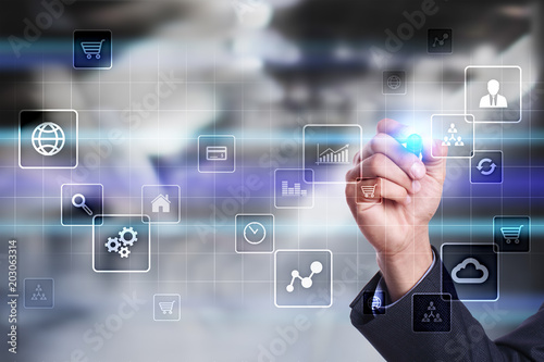 Virtual screen interface with applications icons. APPS. Strategy planning Internet technology concept.