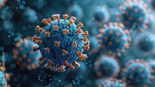 Virus cells or bacteria molecule. Close-up of Flu, view of a virus under a microscope, infectious disease. Bacteria, cell infected organism. Slow motion footage