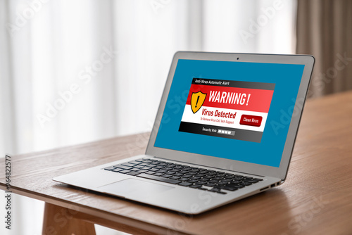 Virus warning alert on computer screen detected modish cyber threat , hacker, computer virus and malware