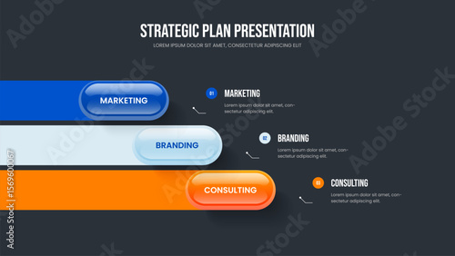 Visual Campaign Three Element Infographic Slide Template. Project Forecast 3 Option Diagram Presentation Design. Enterprise Solution Slideshow Layout Vector Illustration.