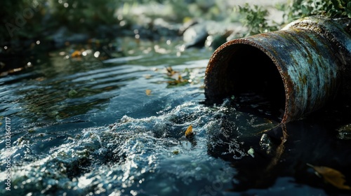 Visual composition of sewage pollution. contaminated water flowing from a pipe with impurities
