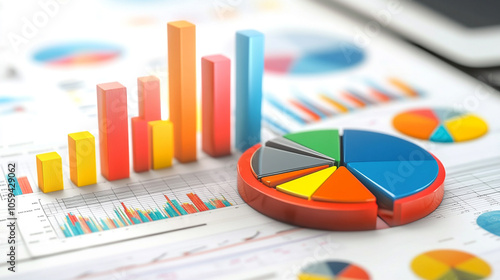 Visual depiction of market opportunity analysis with colorful pie charts and line graphs, symbolizing data-driven insights-4