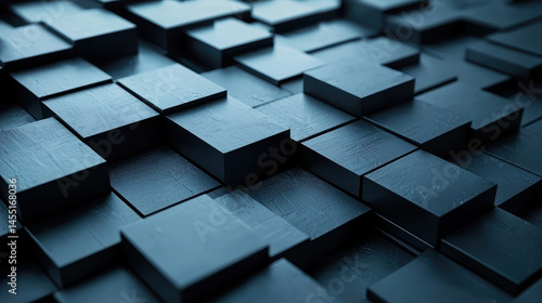 Visual impact background showing a textured surface of dark blue squares at a side angle in a realistic 4K 3D render, perfect for modern backgrounds.