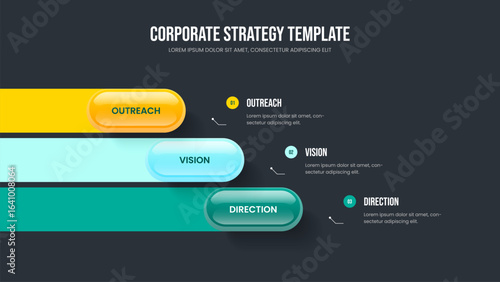 Visual Planning 3 Step Infographic Slideshow Layout. Product Performance Slide Design Vector Illustration. Sales Plan Three Element Diagram Frame Template.