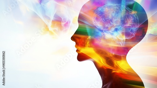 Visual representation of the human mind with colorful brain imagery illustrating insights, mindfullness, thoughts and emotions