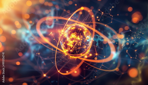 Visualization of atomic structure with electrons orbiting a nucleus, representing fundamental concepts in quantum mechanics