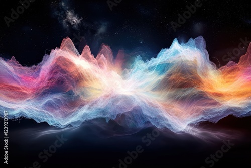 Visualizing vibrant sound waves digital space abstract art cosmic environment dynamic viewpoint engaging patterns in gigapixel format