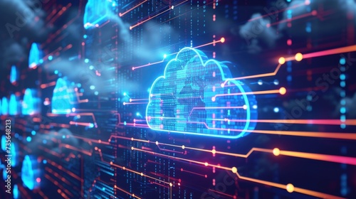 Visuals depicting businesses leveraging cloud computing for various services and operations
